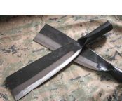 丰利柴刀 全 长:34.5cm 刃 长:22.5cm 柄 长:12cm 刃 宽:7cm 刃 厚:6mm 刃 材:锻打汽车弹簧钢 重 量:570克 硬 度:56-57HRC 表 面:锻打 柄 材:全钢