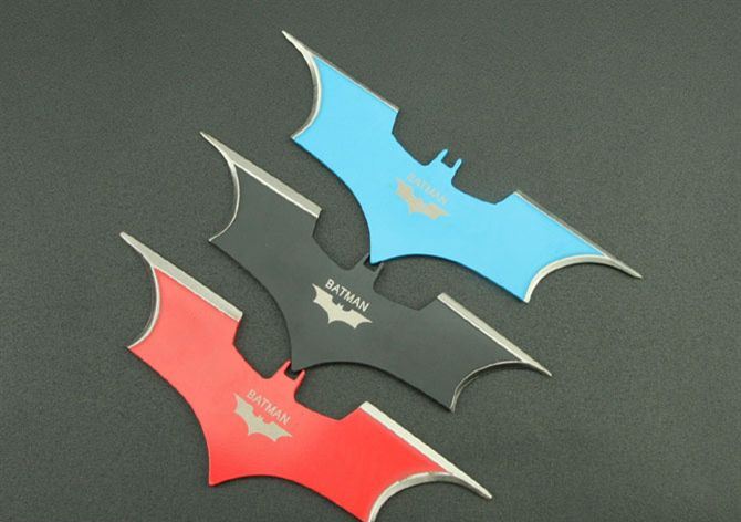 蝙蝠三色飞镖 钢材:3Cr13Mov 长度:14.5cm 刃宽:5cm(一边) 刃厚:2.5cm 总重:210g(含包装) 表面:氧化黑色+红色+蓝色 刀套:尼龙套 其它:三支装