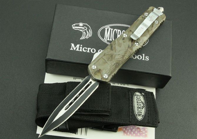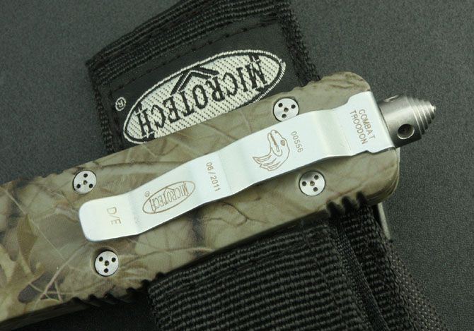 新版伤齿龙双锋全刃(披履) 全 长: 23cm 刃 长: 9cm 刃 厚: 2.8mm 刃 材: 440 硬 度: 57HRC 刀 重: 220g 毛 重: 340g 表 面: 氧化白 柄 材: 锌铝合金(被履) 刀 鞘: 尼龙 锁 闭: 直出弹簧刀