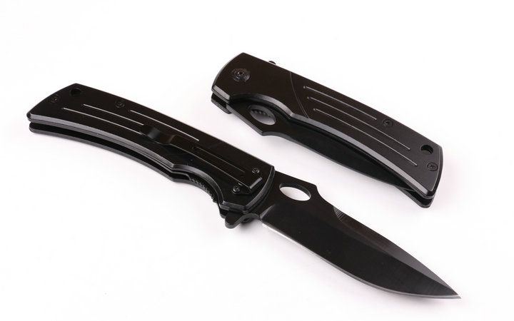勃朗宁DA79快开折刀 全 长:22.5cm 刃 长:9.6cm 刃 宽:2.8cm(最宽处) 刃 厚:3.8mm 柄 长:12.3cm 表 面: 全黑钛 刃 材: 440C 硬 度: 57HRC 柄 材: 全钢 重 量:300克(含彩盒子) 锁 闭:线锁 备 注:带腰夹