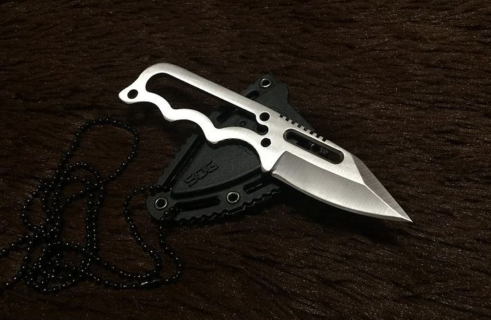 SOG肥牛手刺 全 长: 12CM 刃 长: 5CM 刃 厚: 0.35CM 刃 材: 440C 硬 度: 56HRC 表 面: 砂光 柄 材: 全钢 刀 鞘: 多功能式K鞘