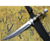 竹叶尖刀2号斑马柄 全 长:30cm 刃 长:17.0cm 柄 长:11.5cm 刃 宽:2.2cm(最宽处) 刃 厚:2.5mm 刃 材:420 硬 度:56HRC 刀 柄:双钢头+斑马柄 表 面:镜光 毛 重:120克 备 注:带尼龙刀套