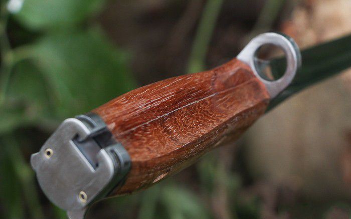 长 度:40CM 刃 长:28.5CM 刀直径:2.1CM 净 重: 450g 硬 度: 56HRC 刀材质:430高碳不锈钢 柄 材:原木 附皮革刀套。