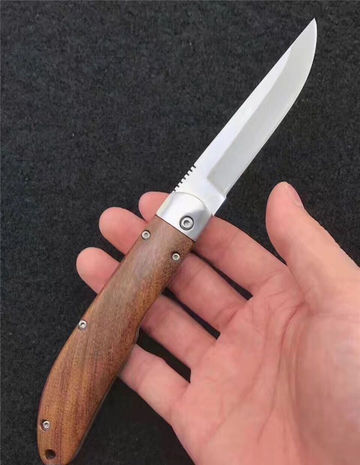 横开弹弹鱼式跳刀 全 长:21cm 刃 长:9cm 柄 长:12cm 刃 宽:25mm 刃 厚:3mm 刃 材:5CR13MoV 重 量:192g(含包装) 硬 度:58HRC 柄 材:巴马木 锁 型:钮钉锁 配 置:尼龙套