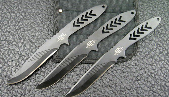 全钢飞刀 A-54333-2(三支一套) 全 长:18.8cm 刃 厚:2.5mm 刃 材:420A 硬 度:56Hrc 表 面:电泳 刀 套:尼龙 净 重:230g 飞刀的造型,经典别致。单面开刃锋利,还可以当小刀使用!