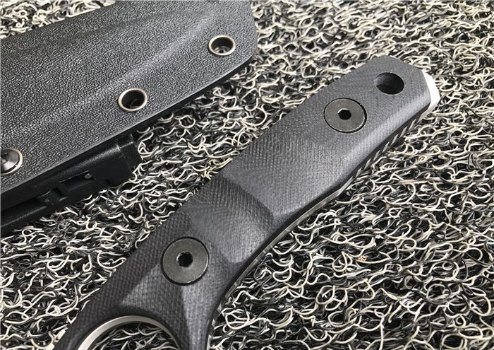Dwaine Carrillo硬汉军刀地狱鸟直刀 材质:D2 全长:27cm 刃长:12cm 刃厚:0.5cm 刃宽:3.7cm 刀重量:300克 表面:砂光拉丝 硬度:60±1HRC(真空热处理) 手柄:黑色G10,CNC 成型 刀鞘:战术K鞘(进口Kydex板)