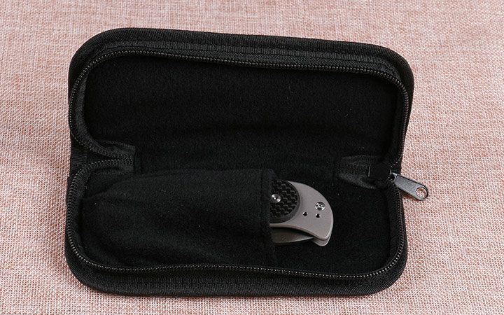 VUCR碳纤快开折刀 全 长:20.5cm 刃 长:8.8cm 柄 长:11.7cm 刃 宽:3.0cm(最宽处) 刃 厚:3.9mm 刃 材:优质D2 硬 度:60-62HRC 刀 柄:钛柄+碳纤(表面经真空镀钛处理) 表 面:精细沙光 锁 定:侧锁 重 量:180克(含包装) 备 注:高品质尼龙套 其 他:现货是加装进口轴承,开合更顺畅