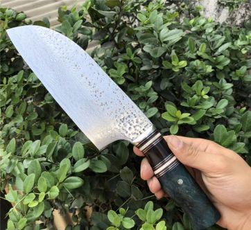 特锋利厨刀VG10芯层大马士革钢,锻打表面经典复古风,(手柄采用孔雀纹稳定化木)质感大方靓丽,送礼佳品