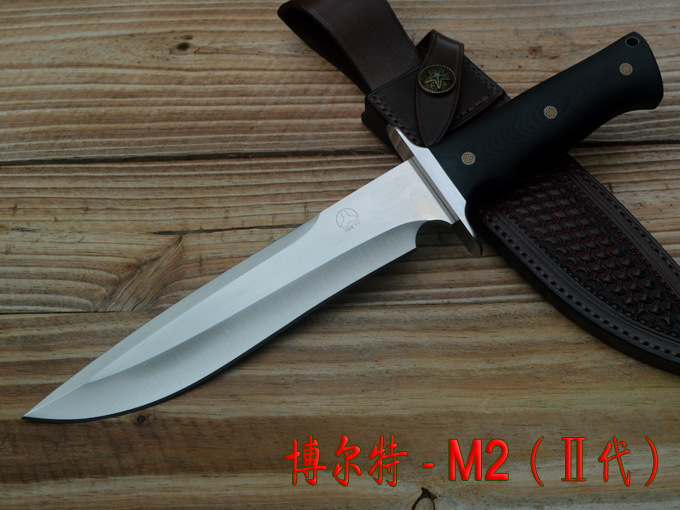 博尔特布兰登M2(Ⅱ代)直刀 全长:330MM 刃长:183MM 刃宽:39MM 刃厚:6.5MM 刃面:砂光,幼拉丝处理 类型:以锋利度,砍削,韧性保持度最出色 开刃方式:二次开刃 刃材:DC53(线切割开料) 热处理:真空油淬深冷热处理 硬度:60HRC 柄材:黑色G10+马骞克铜钉,加防滑处理,一体龙骨包柄把握更舒服,性能强悍 包装:精美礼品盒 净重:520克(不含包装) 刀鞘:高端头层牛皮手工印花皮鞘