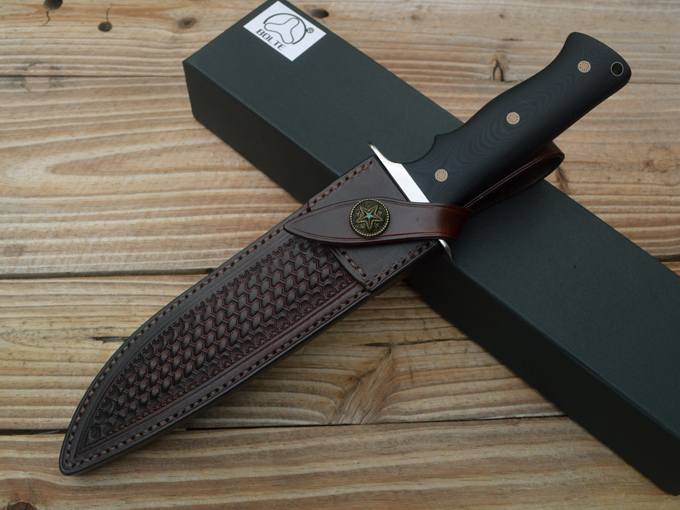 柄材:黑色G10+马骞克铜钉,加防滑处理,一体龙骨包柄把握更舒服,性能强悍